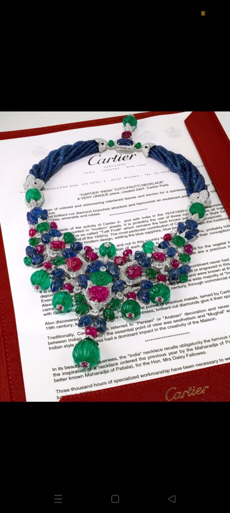 Today, Cartier jewelry from the orientalist period belongs among the most valuable objects on the collectors’ market. Tutti Frutti brooches, clocks with Chinese motifs, or necklaces with carved emeralds achieve auction prices counted in millions of dollars.